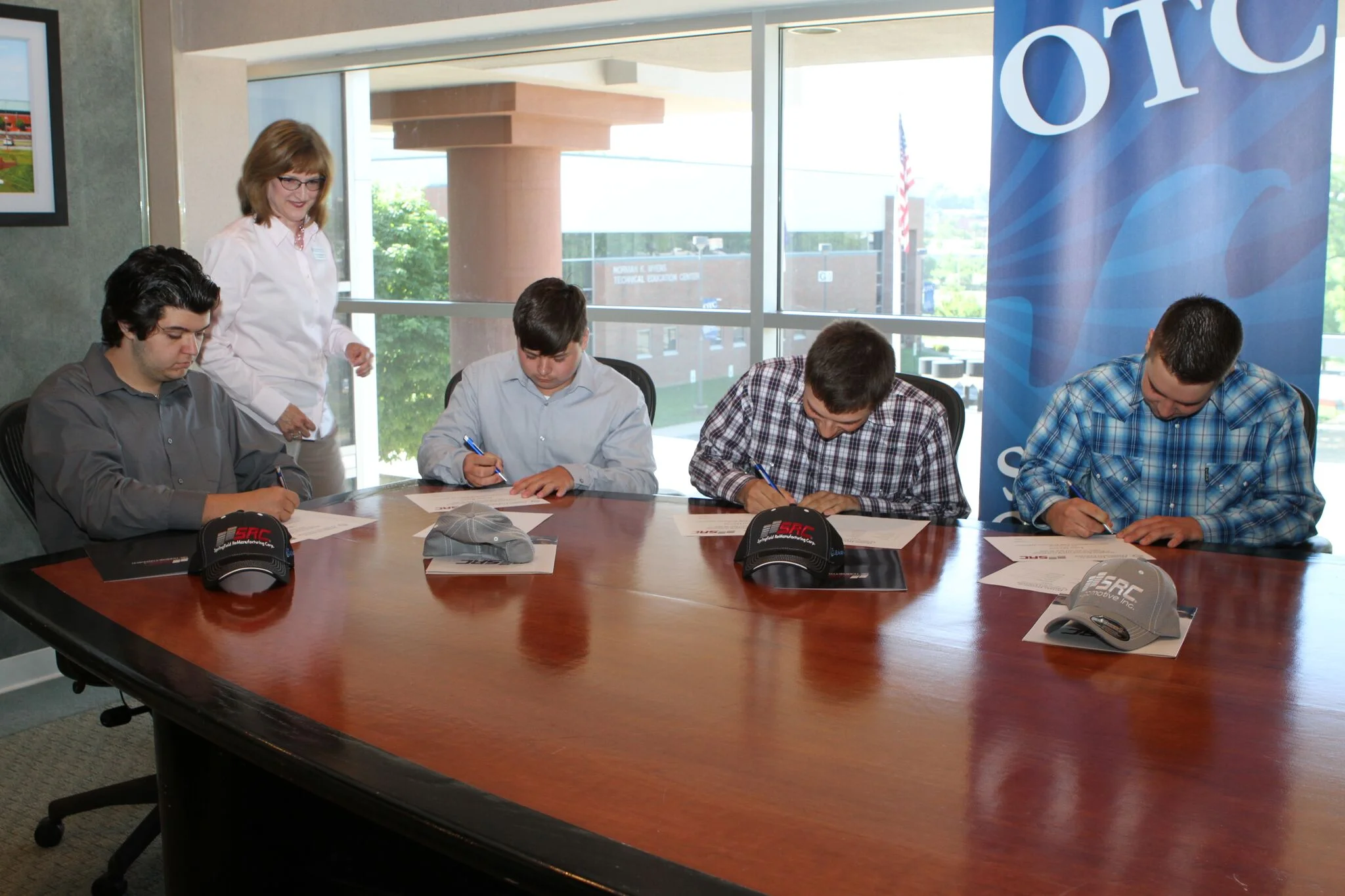 On Friday, May 18, 2018, four area students signed agreements as the first members of SRC and Ozarks Technical Community College's (OTC) registered apprenticeship program. The enrolled students will study industrial engineering technology at the OTC Career Center in the half-day program while completing their high school degrees in their hometowns. Students will also be training with individual mentors at Springfield Remanufacturing Corp. and SRC Automotive as industrial manufacturing technicians.